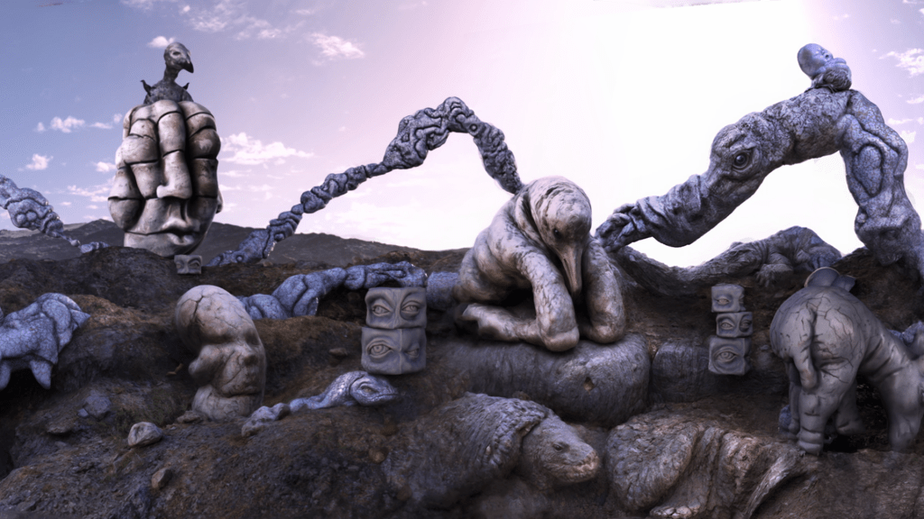 We explored both directions: feeding our 3D renders into AI to generate new visual ideas, and transforming AI outputs into 3D objects for further iteration. At times, the process felt complex and even disorienting, but it consistently opened unexpected possibilities. The results were not only experimental but also exciting, revealing new ways of thinking about image-making.