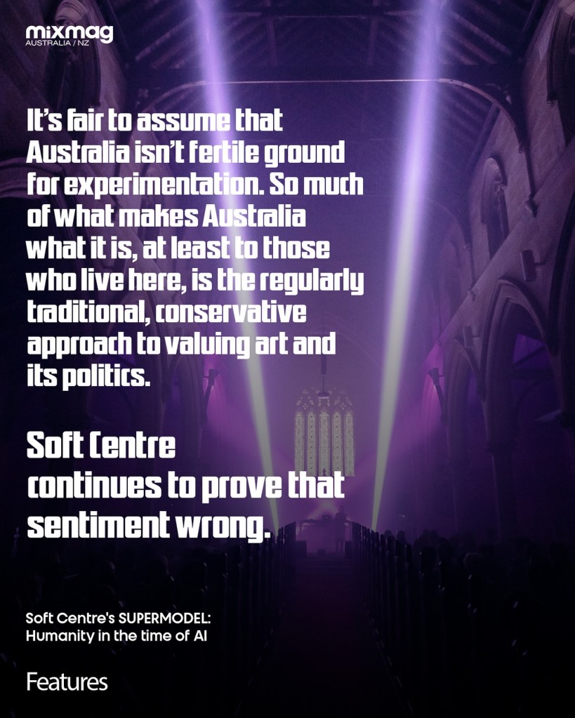 Conceived by Sydney-based experimentalists – SOFT CENTRE – ‘SUPERMODEL’ is an expansive three-day program from August 29th-31st. SUPERMODEL’s stacked program of ecstatic performances in heritage book-lined halls, deep-dive keynotes, and workshops, grapples with contests of authorship, archiving and authenticity in the age of accelerating AI and global narrative collapse. In search of new models for co-authorship, collaborative worldbuilding, and more-than-human intelligence, SUPERMODEL offers potent counter-narratives to an increasingly atomised world.