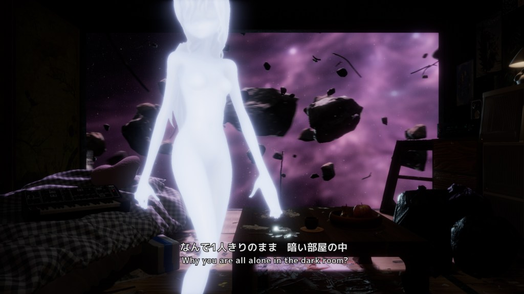 Jingxin Wang’s eerie visual takes Prettybwoy’s search for identity and transforms it into a surreal sci-fi, as a mysterious avatar glitches through a desolate environment of levitating cow bones, lonely asteroid belts and infinitely reproducing gates, all of which center around a digital reproduction of a disheveled bedroom.